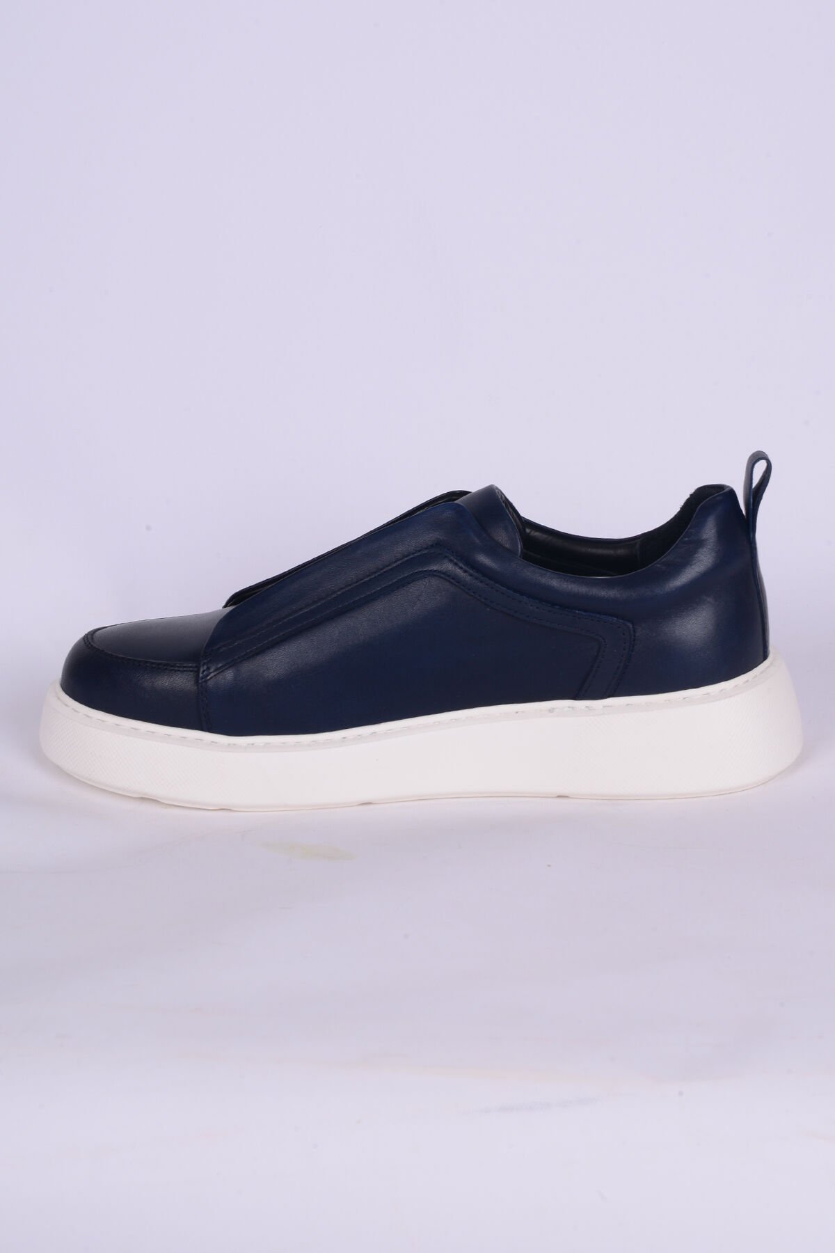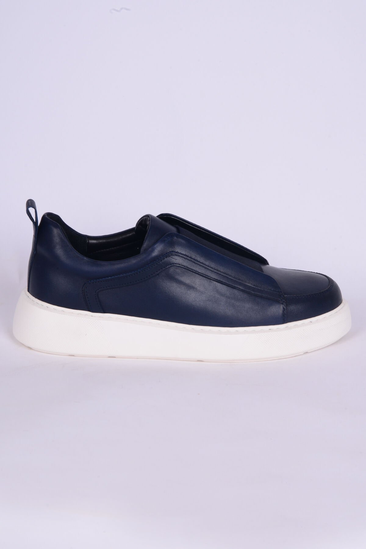 New Onix 1281 Deri Rahat Taban Bağcıksız Yüksek Taban Lacivert Günlük Erkek Ayakkabı