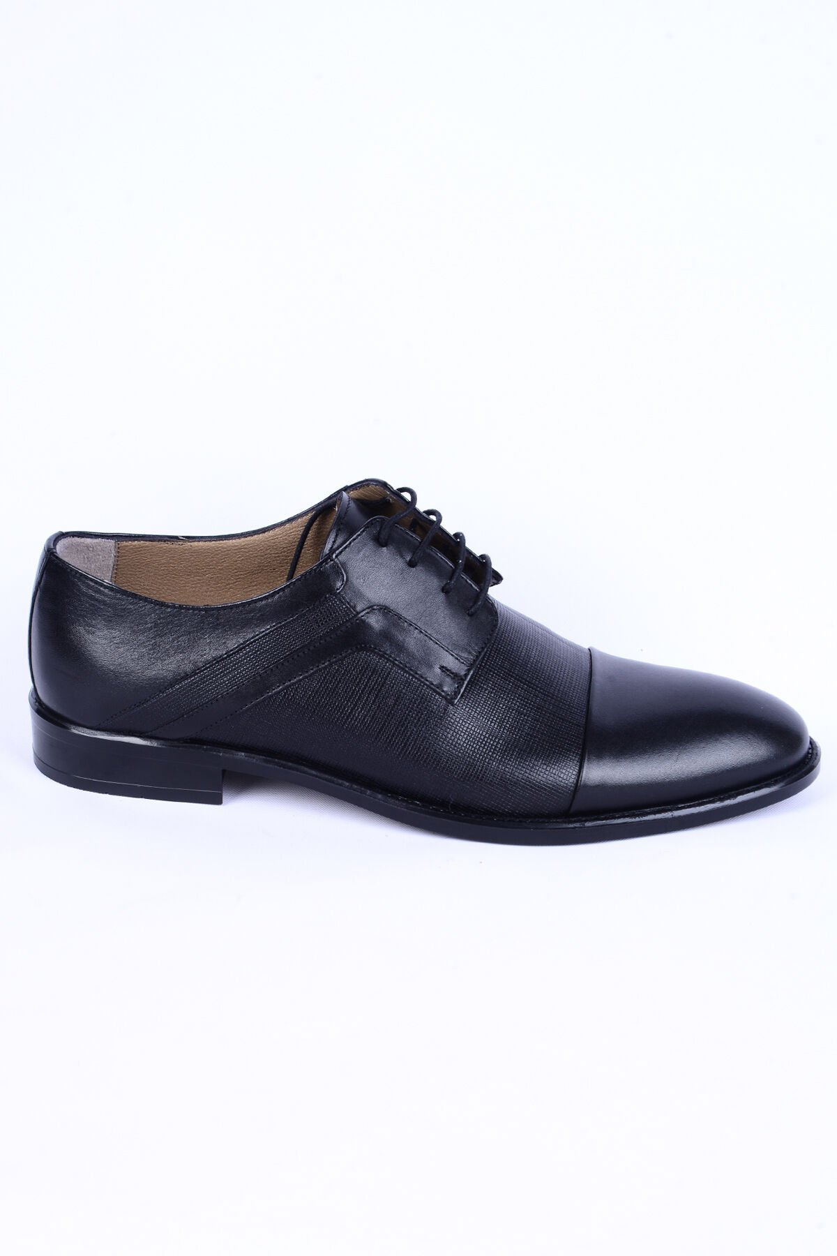 New Onix 7032 Deri Desenli Rahat Taban Bağcıklı Neolit Taban Siyah Klasik Erkek Ayakkabı