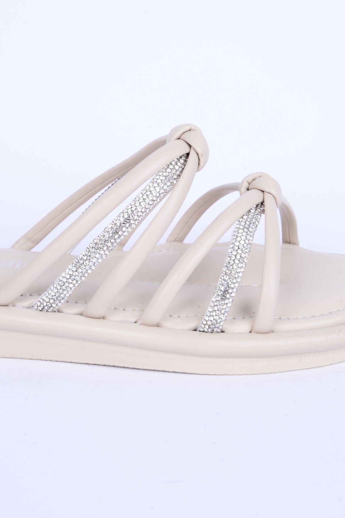 Pierre Cardin 5106 Taş Detaylı Rahat Taban Beyaz Günlük Kadın Terlik