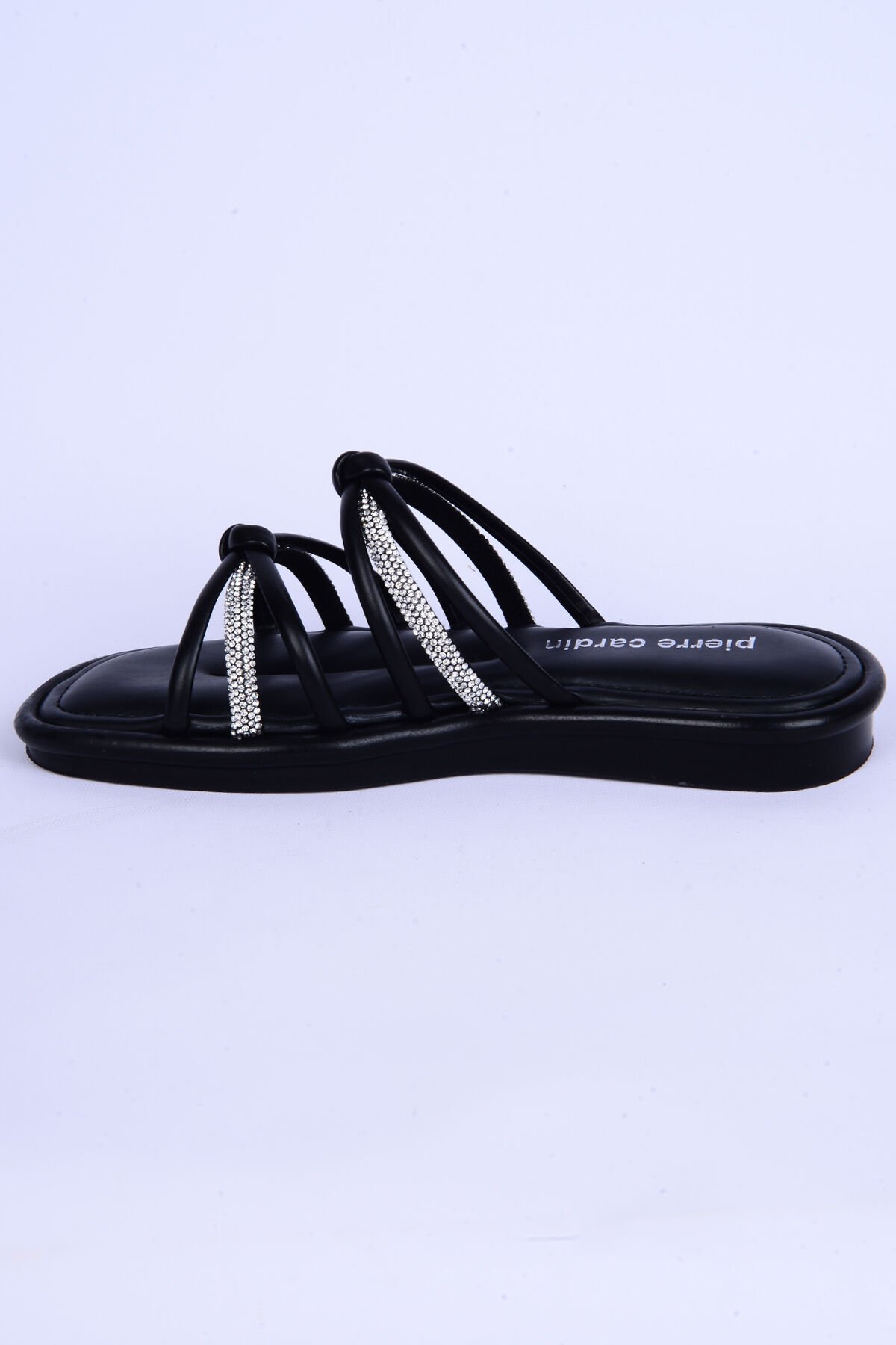 Pierre Cardin 5106 Taş Detaylı Rahat Taban Siyah Günlük Kadın Terlik