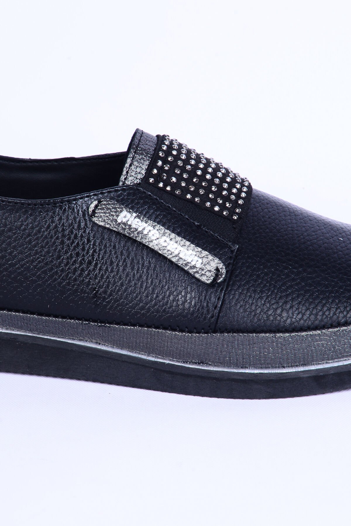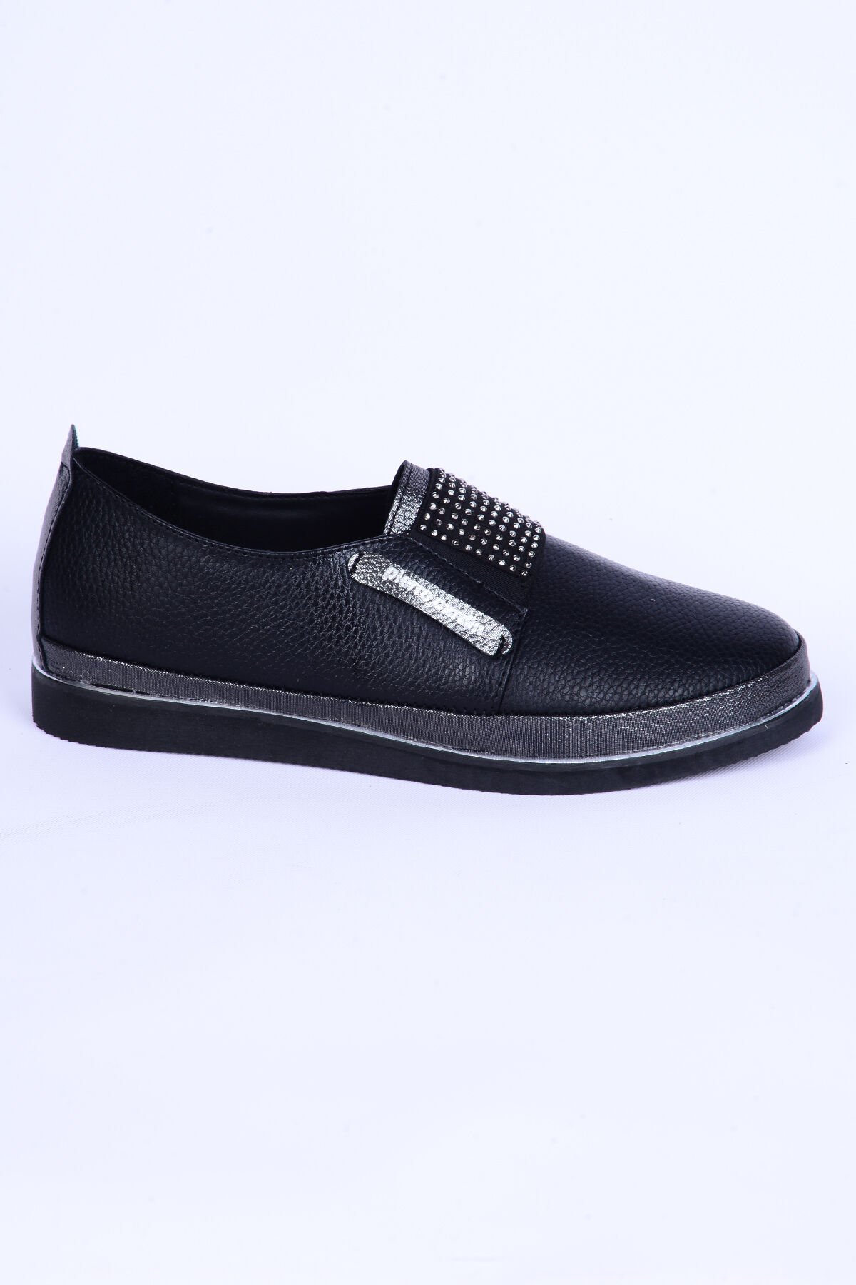 Pierre Cardin 51678 Deri Bağcıksız Taş Detaylı Rahat Otopedik Taban Siyah Günlük Kadın Ayakkabı