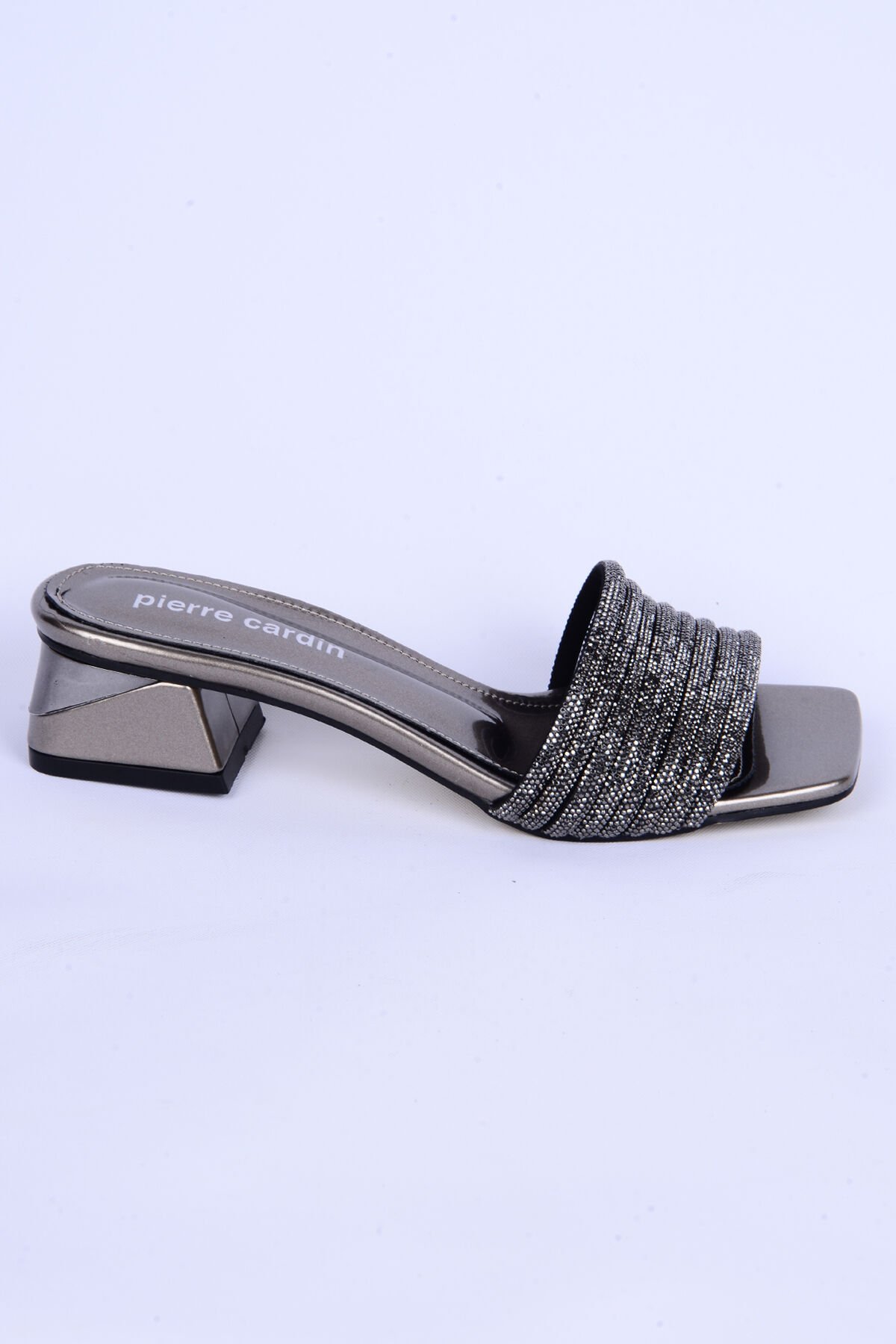 Pierre Cardin 53120 Taşlı Kalın Kısa Topuk Rahat Taban Platin Günlük Kadın Terlik