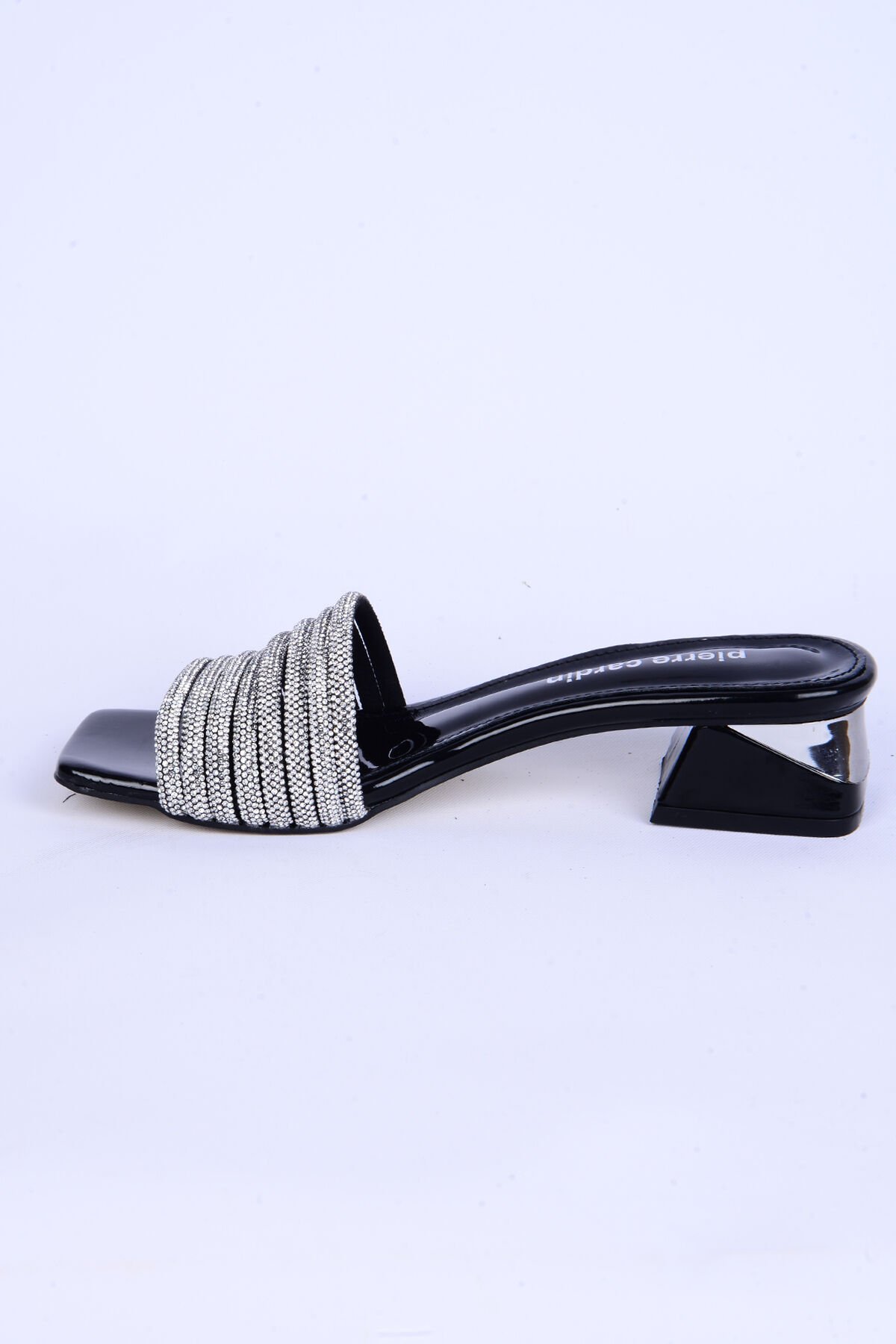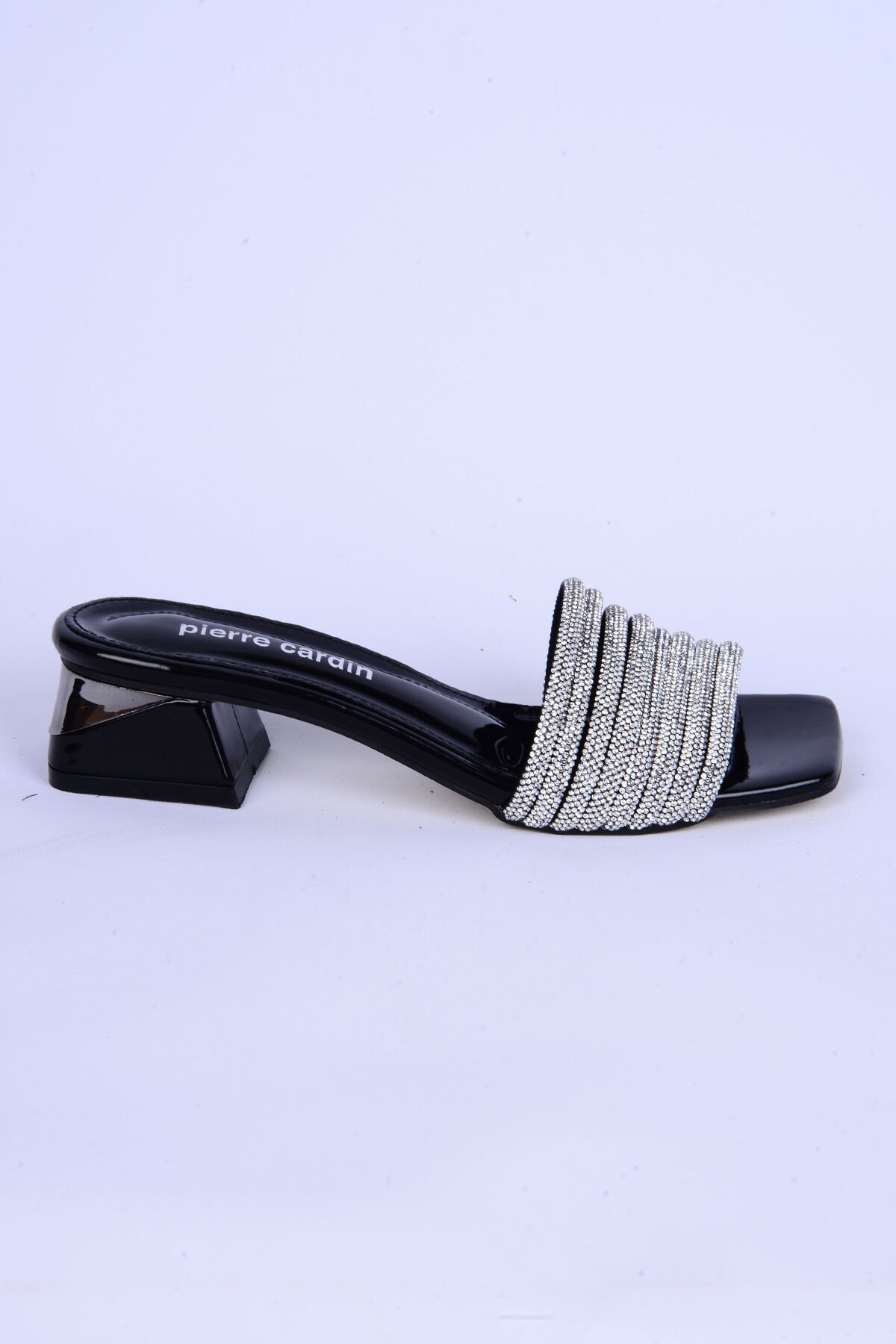 Pierre Cardin 53120 Taşlı Kalın Kısa Topuk Rahat Taban Siyah Günlük Kadın Terlik