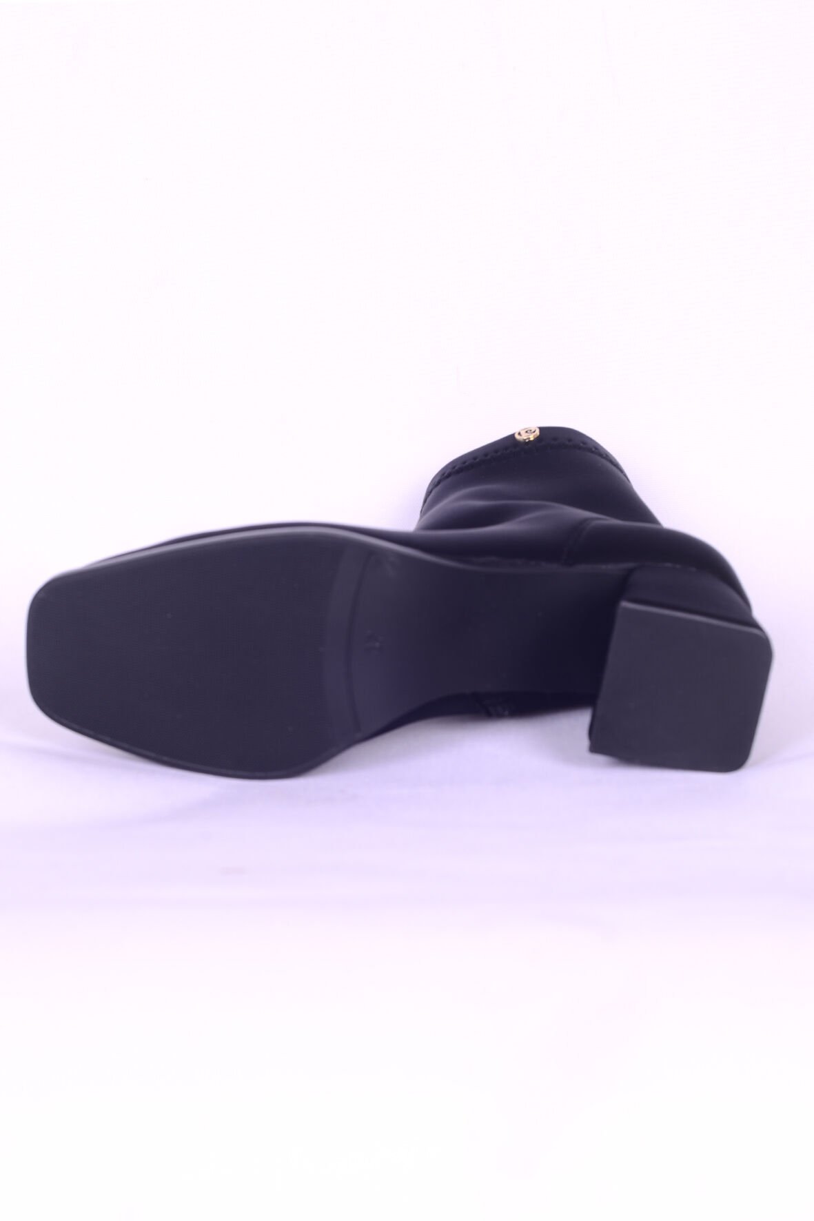 Zarif tasarımı ve şık duruşuyla dikkat çeken siyah süet topuklu bot, hem günlük hem de özel kombinlerde tarzınızı tamamlar. Yumuşak süet dokusu ve kalın topuk yapısı sayesinde gün boyu konforlu bir kullanım sunar. Minimal detaylarıyla modern ve sofistike bir görünüm oluşturur.
