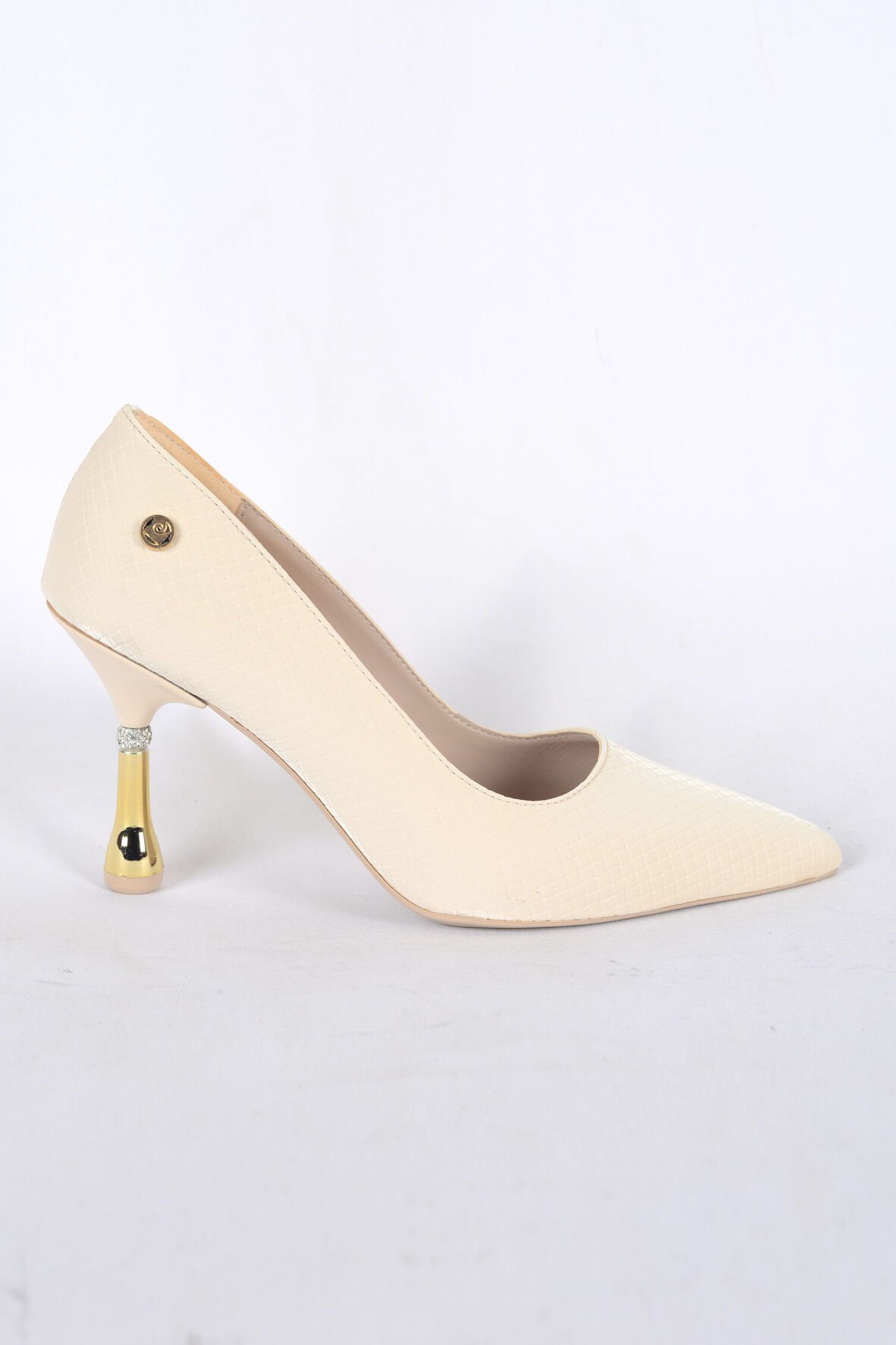 Pierre Cardin 55021 Krem Kadın Topuğu Gold Detaylı Topuklu Ayakkabı