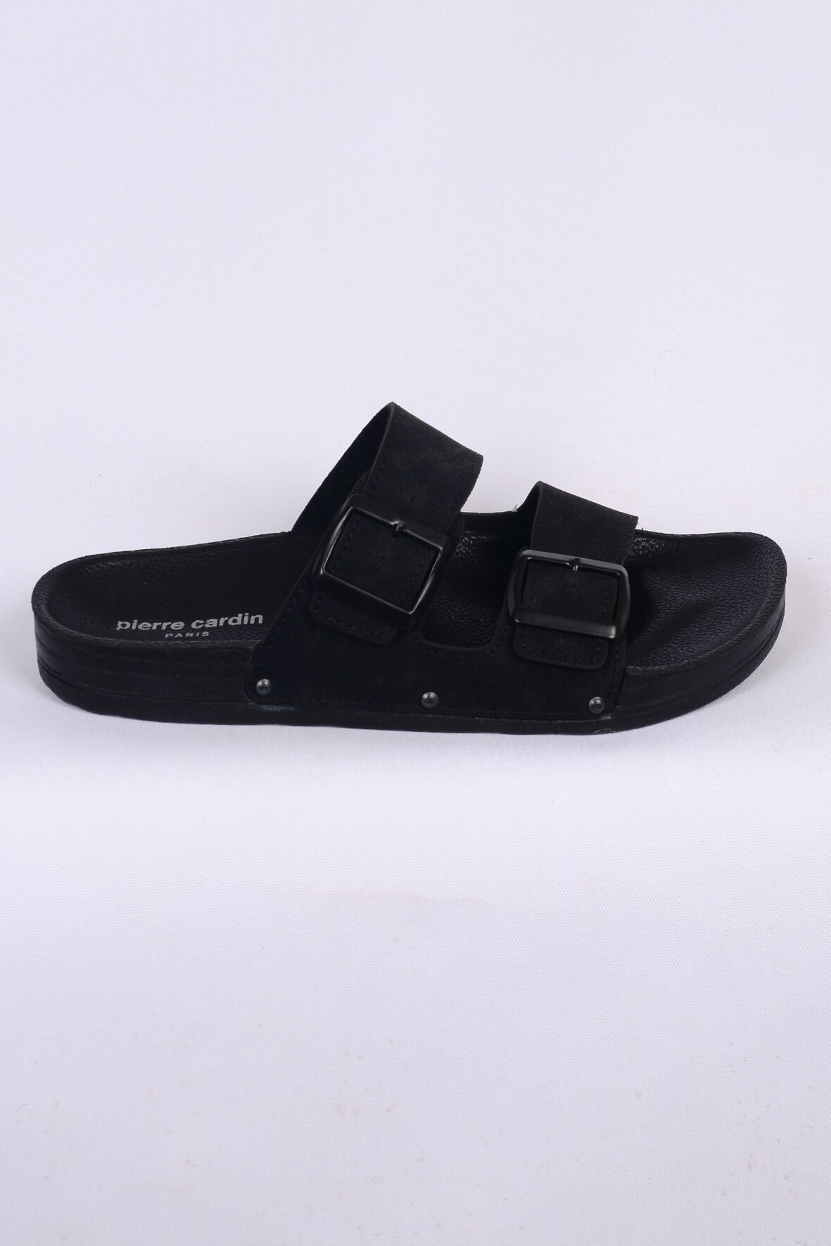 Pierre Cardin 7241 Siyah Nubuk Çift Bantlı Erkek Terlik