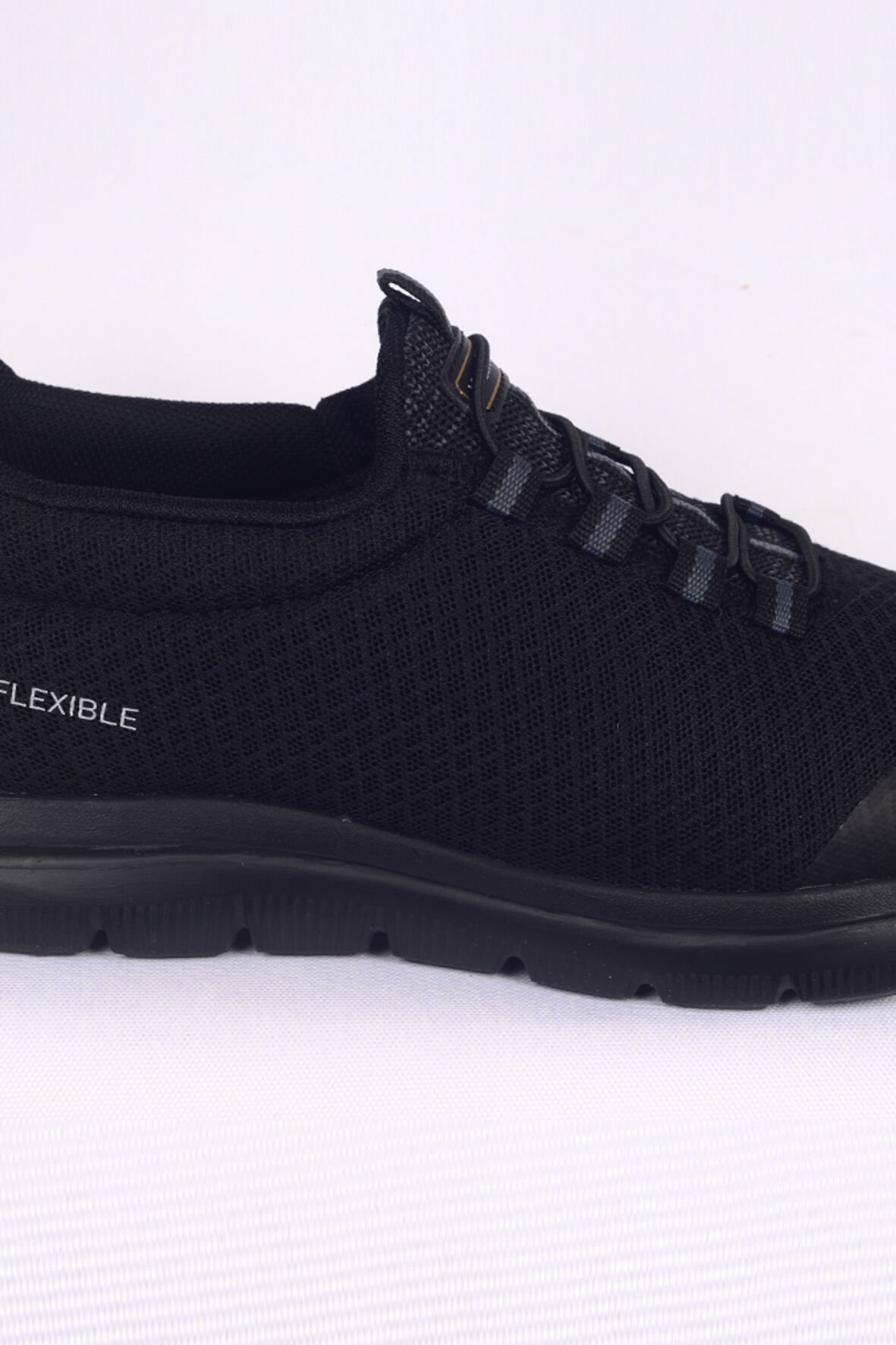 Walkway Flexible 85 M Siyah Siyah Lastik Bağcıklı Yumuşak Tavan Fileli Erkek Ayakkabı