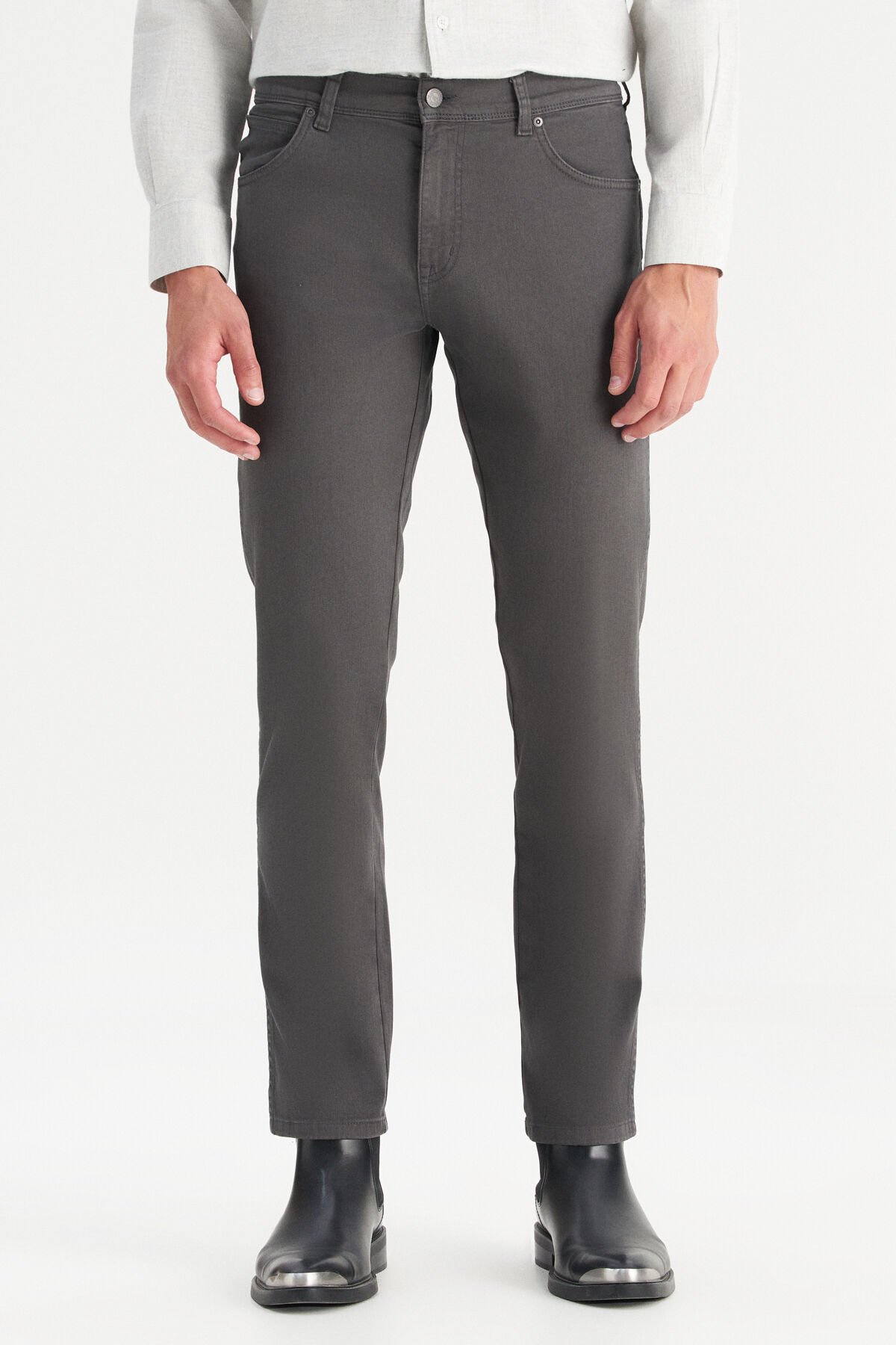 Manken Bilgisi : Beden : M/48 Boy : 187 cm Göğüs : 97 cm Bel : 76 cm, Ürün Ölçüleri (30/30 Beden Ölçüleridir) : Bel Ölçü : 76.2 cm Basen Ölçü : 99.1 cm Baldır Ölçü : 59.7 cm Diz Ölçü : 40 cm İç Boy Ölçü : 76.2 cm Paça Ölçü : 36.2 cm, Kumaş Bilgisi : %97 Pamuk %3 Elastan, Renk : Anthracite, Kalıp : Slim Fit, Paça : Dar Paça, Bel : Normal Bel, Cinsiyet : Erkek, Ürün Adı : Slim Fit Dar Kesim Denim Esnek Jean Kot Pantolon, Ürün Kodu : W12S004003.