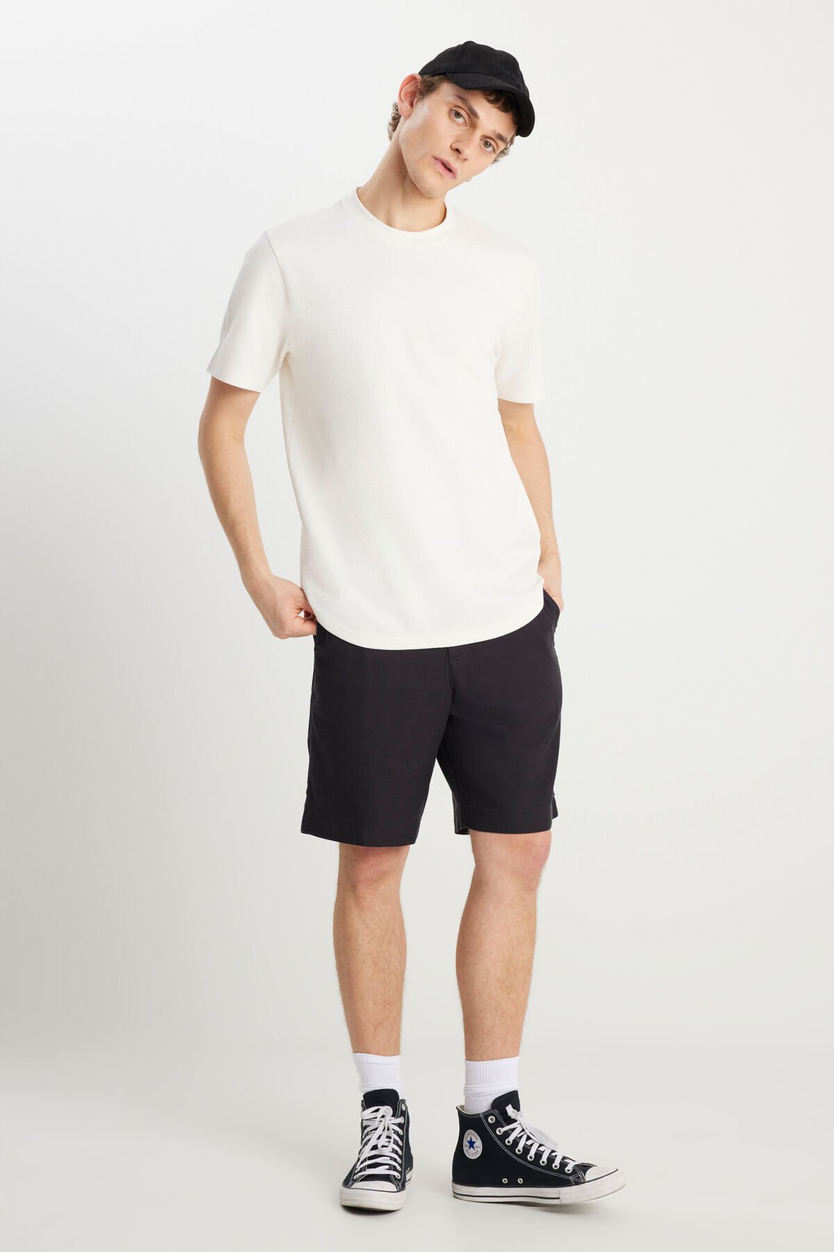 Wrangler - Relaxed Fit Geniş Kesim Bisiklet Yaka Ekru Dokulu Basic Tişört - W2510718104_104
