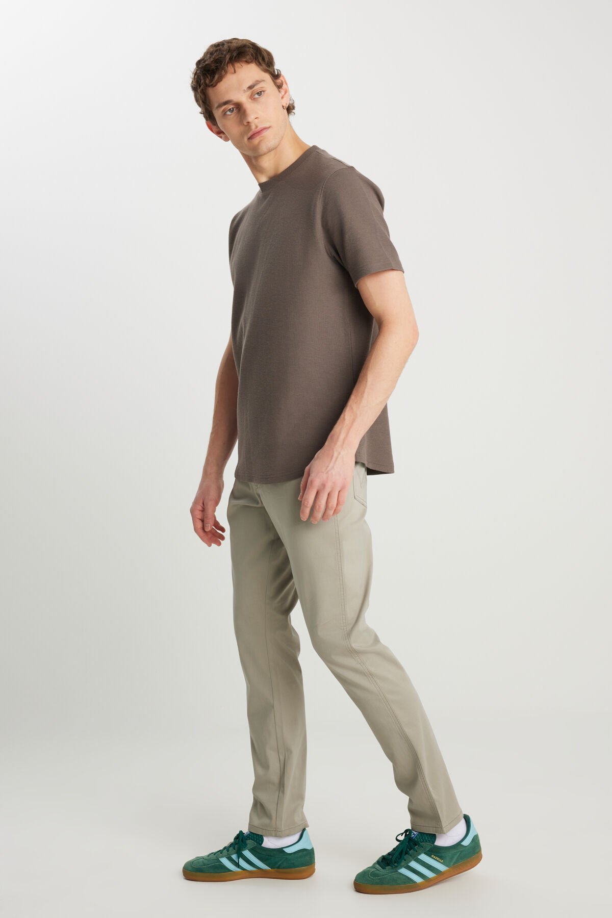 Wrangler - Relaxed Fit Geniş Kesim Bisiklet Yaka Dokulu Haki Tişört - W2510718801_801