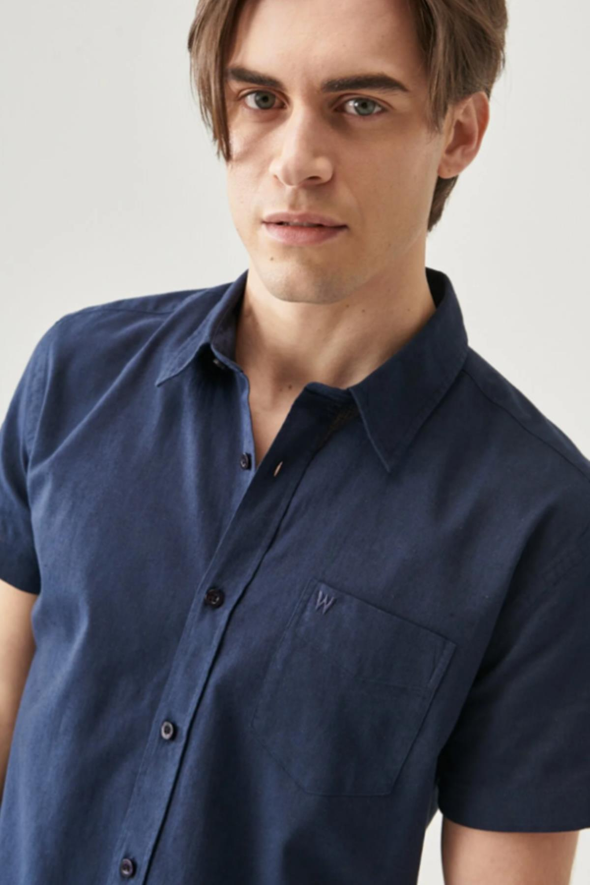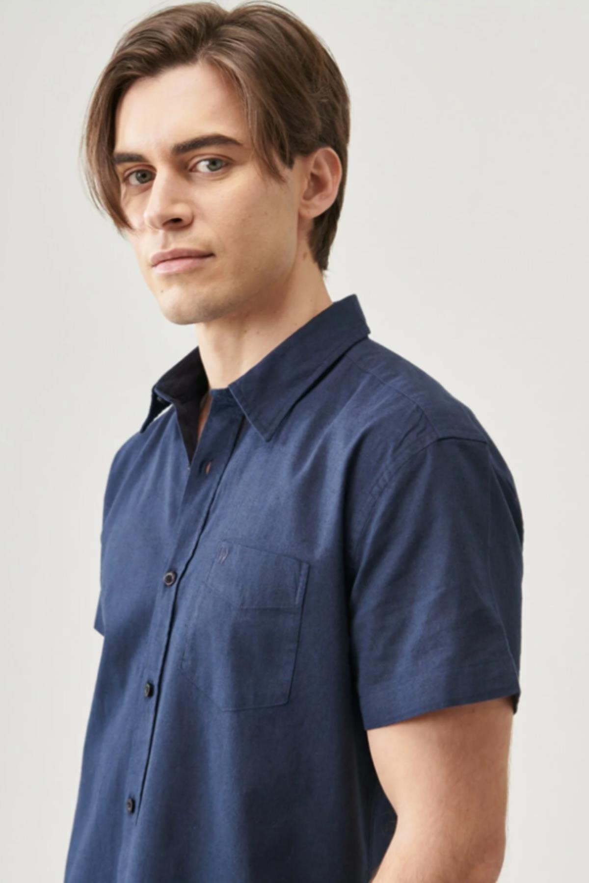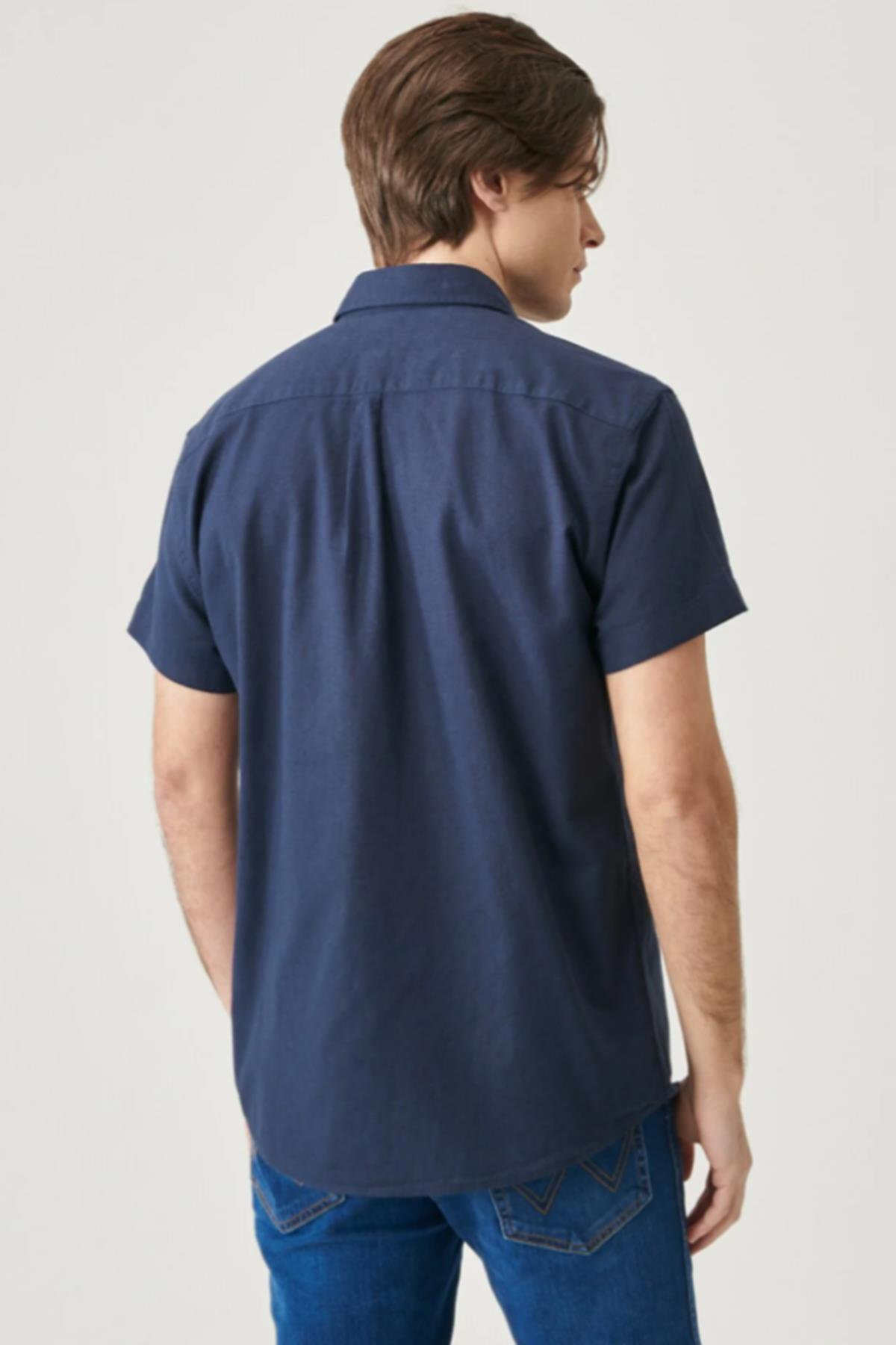 - Manken Bilgisi : Beden : M/48 Boy : 187 cm Göğüs : 97 cm Bel : 76 cm - Ürün Ölçüleri (S Beden Ölçüleridir) : Göğüs Ölçü : 51.5 cm Boy Ölçü : 73.3 cm Omuz Ölçü : 46.8 cm Kol Ölçü : 19 cm - Kumaş Bilgisi : %100 Pamuk - Renk : Navy - Kalıp : Regular Fit - Yaka : Gömlek Yaka - Kol : Kısa Kol - Cinsiyet : Erkek - Ürün Adı : Regular Fit Normal Kesim Kısa Kollu Düğmeli Yaka Keten Gömlek - Ürün Kodu : W5J7LO114. Regular Fit Normal Kesim Kısa Kollu Düğmeli Yaka Keten Gömlek