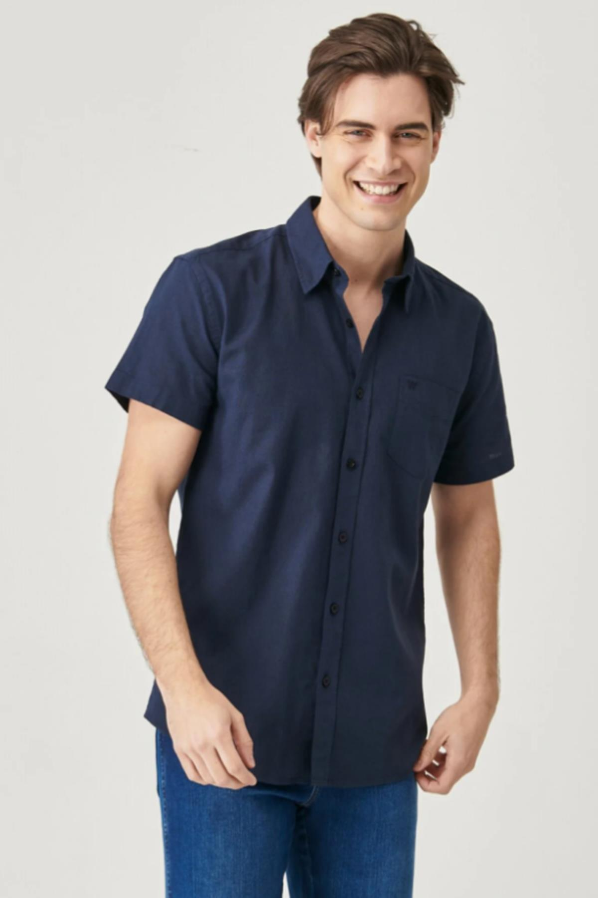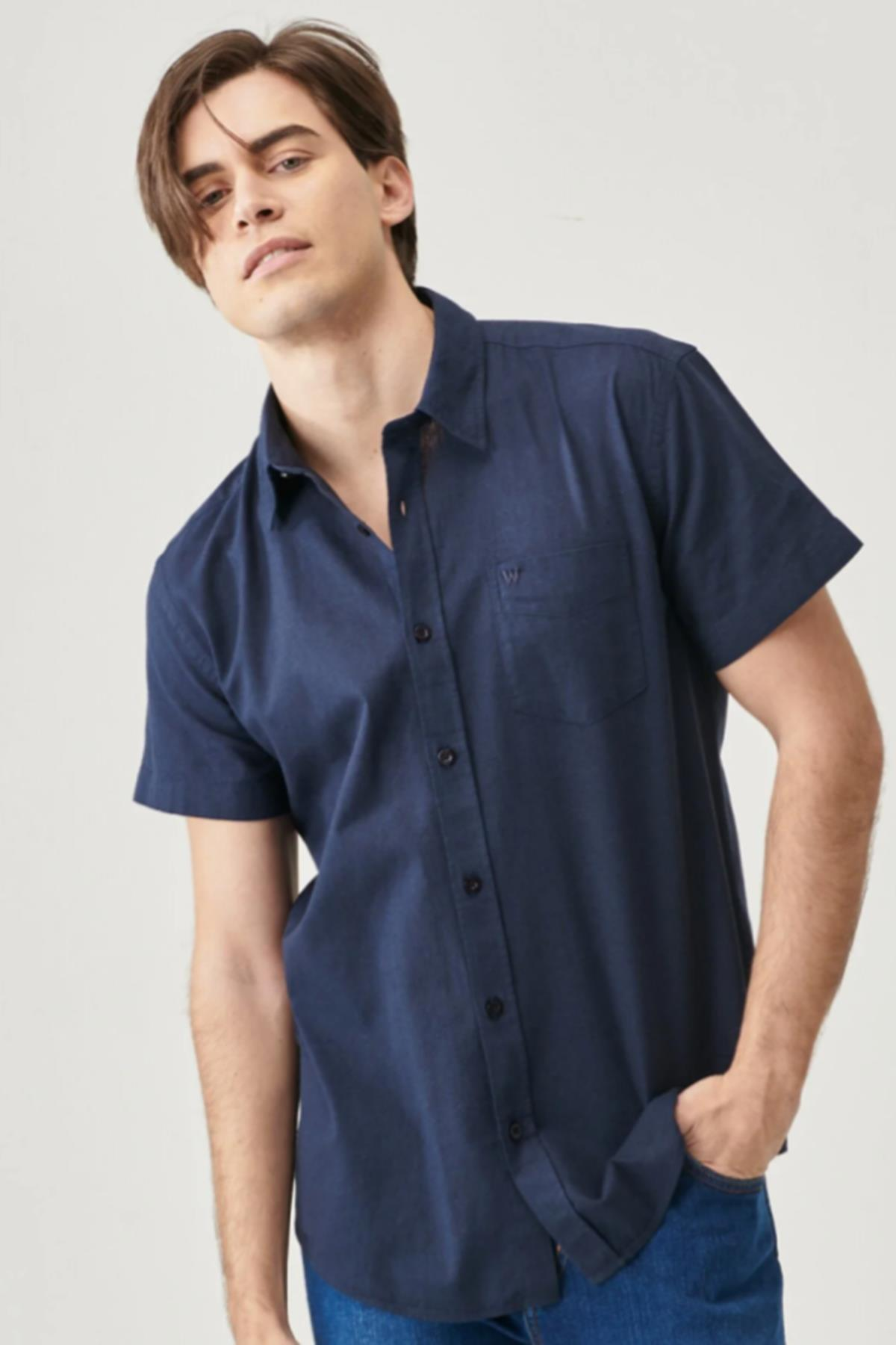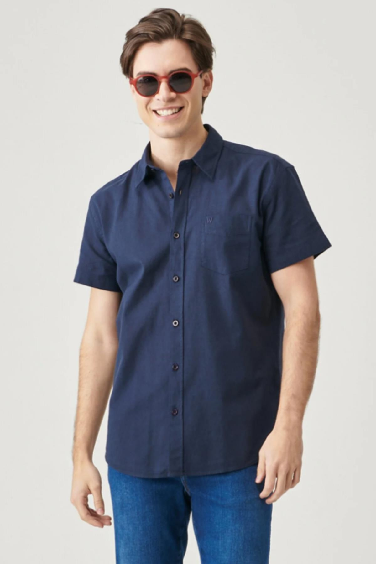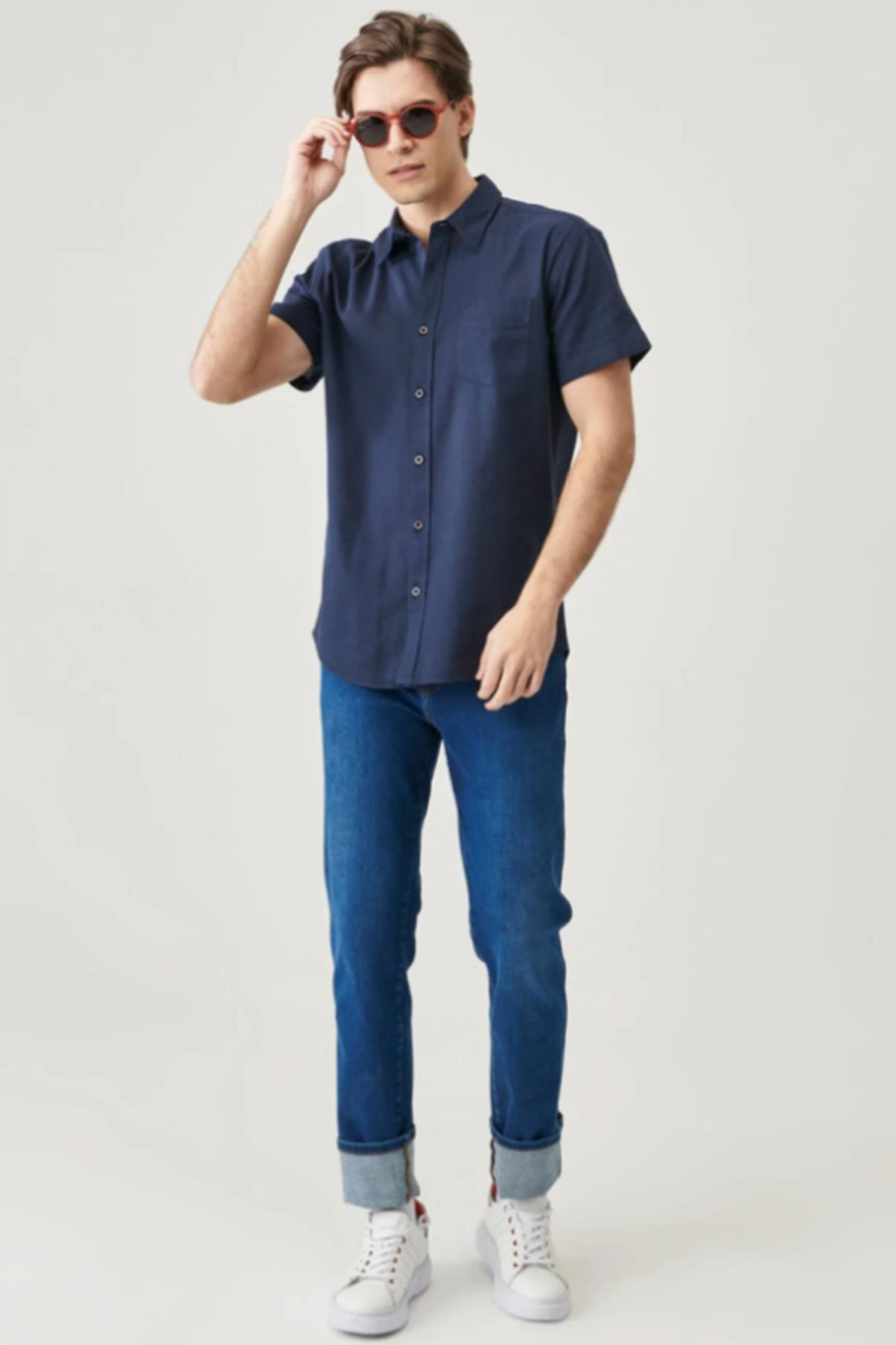 - Manken Bilgisi : Beden : M/48 Boy : 187 cm Göğüs : 97 cm Bel : 76 cm - Ürün Ölçüleri (S Beden Ölçüleridir) : Göğüs Ölçü : 51.5 cm Boy Ölçü : 73.3 cm Omuz Ölçü : 46.8 cm Kol Ölçü : 19 cm - Kumaş Bilgisi : %100 Pamuk - Renk : Navy - Kalıp : Regular Fit - Yaka : Gömlek Yaka - Kol : Kısa Kol - Cinsiyet : Erkek - Ürün Adı : Regular Fit Normal Kesim Kısa Kollu Düğmeli Yaka Keten Gömlek - Ürün Kodu : W5J7LO114. Regular Fit Normal Kesim Kısa Kollu Düğmeli Yaka Keten Gömlek